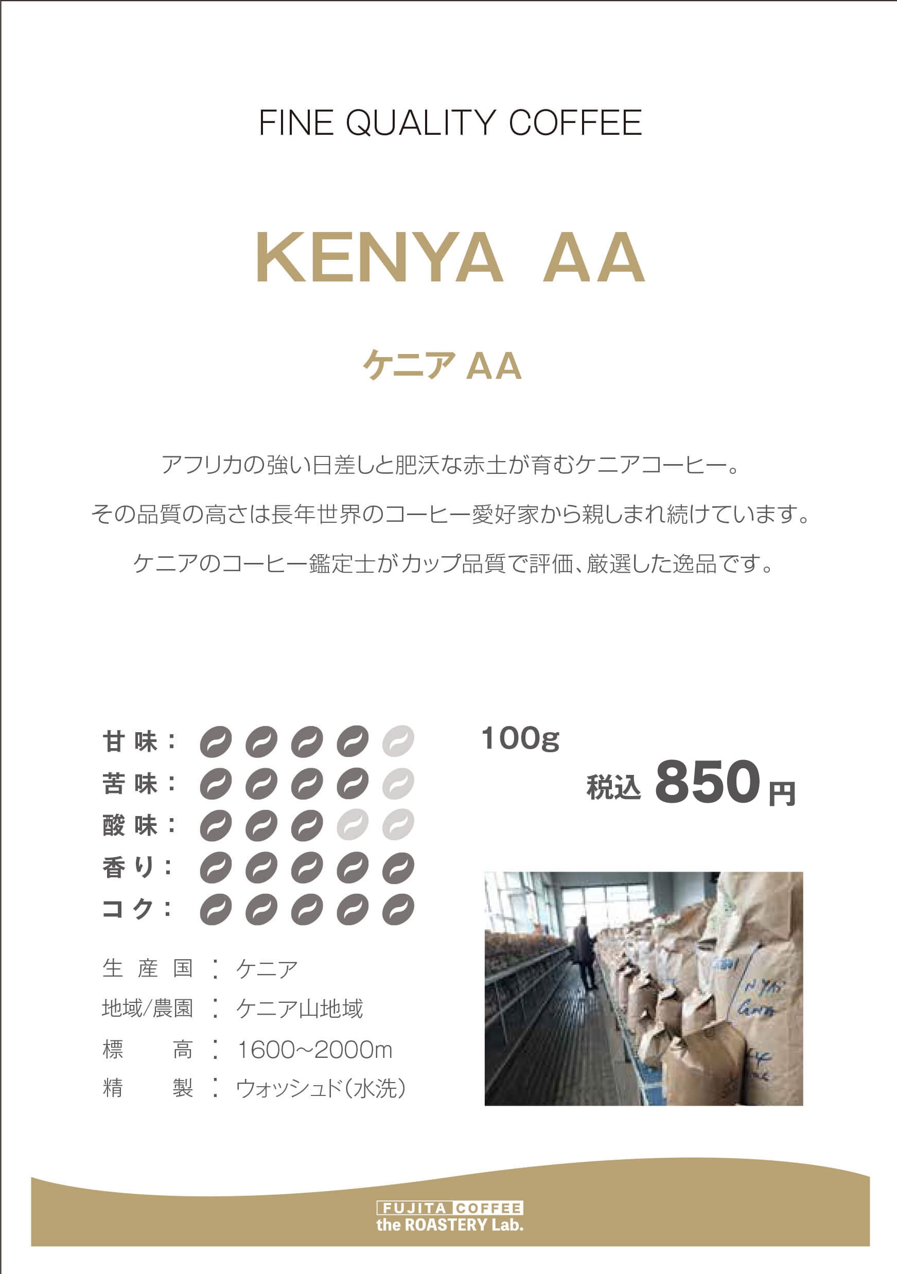 なめらかな舌触りのビターな最高級品質「ケニアAA」